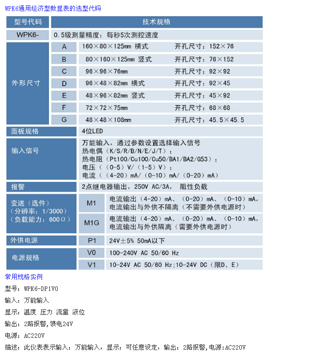K6-A,WPK6-B,WPK6-C,WPK6-D,WPK6-E,WPK6-F,WPK6-G,通用經(jīng)濟型數(shù)顯表