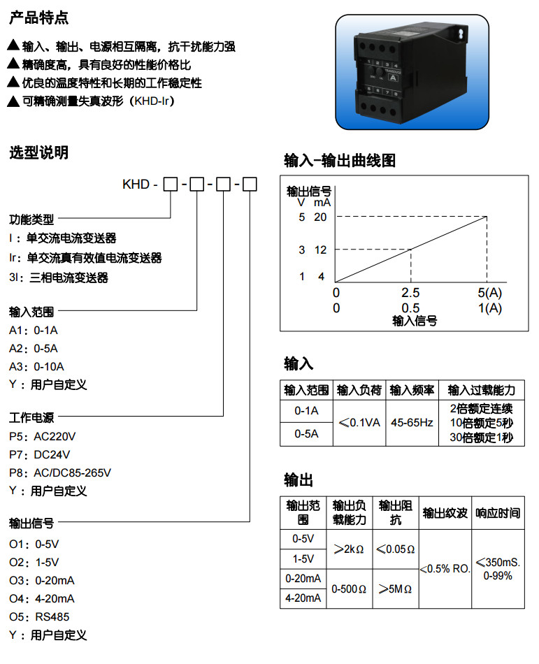 KHD-I-A1-P5-O1,KHD-I-A2-Y-O3,KHD-I-A2-P5-O4,KHD-Ir-A1-P7-Y,KHD-3I-Y-Y-Y,KH型電流變送器