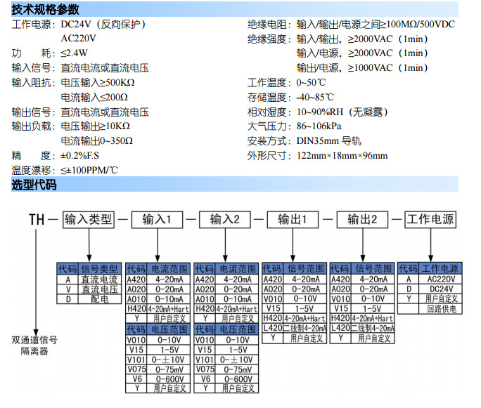 TH-A,TH-V,TH-D,TH-A-2A420-2A420-D,TH-V-2Y-2A420-D,TH雙通道信號(hào)隔離器