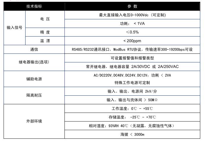 電壓:最大直接輸入電壓0~1000Vdc ,超出另加分壓電阻
