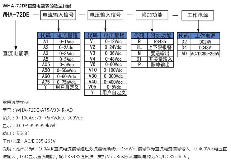 WHA-72DE智能液晶顯示直流電能表專為太陽(yáng)能光伏發(fā)電系統(tǒng)、移動(dòng)電信基站、新能源汽車等的電力監(jiān)控而設(shè)計(jì),它可以同時(shí)測(cè)量直流電路上的電流、電壓、電能。它們都配有RS485通信接口,通過(guò)標(biāo)準(zhǔn)的Modbus協(xié)議,可與各種組態(tài)系統(tǒng)兼容,從而把前端采集到的直流電參量實(shí)時(shí)傳送給系統(tǒng)數(shù)據(jù)中心。