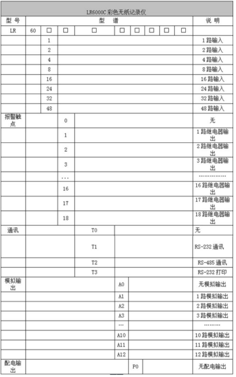 LR6000C系列彩色電流記錄儀48路(不含報警,變送等其它功能)萬能輸入(可組態(tài)選擇輸入:標準電壓、標準電流、熱電偶、熱電阻、頻率、毫伏等)??蓭?8路報警輸出,12個變送輸出,RS232/485通訊接口,以太網接口,微型打印機接口和USB接口,SD卡插座;可提供傳感器配電;具有強大的顯示功能,實時曲線顯示,歷史曲線追憶,棒圖顯示,報警列表顯示。人性化的外觀設計、完美的功能體現(xiàn)、可靠的硬件品質、精湛的制造工藝,使LR6000C具有更高的性能價格比。