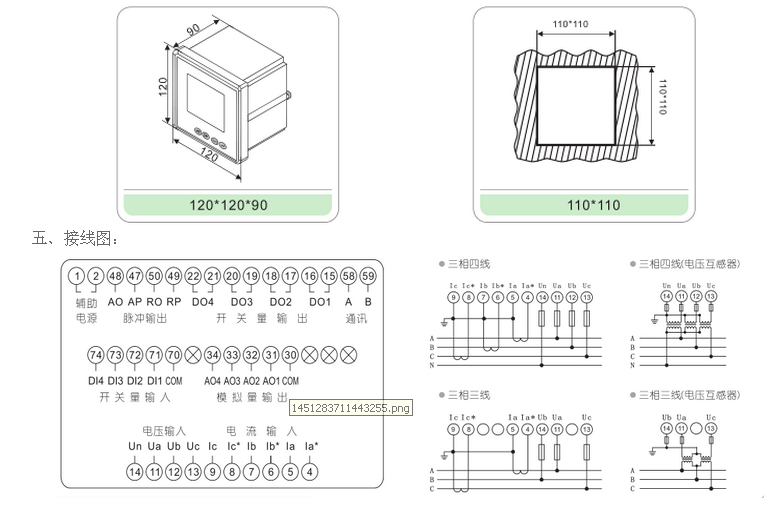 輸出: 2路開關量輸出,1路模擬量輸出,2路電能脈沖輸出(脈沖常數(shù)3200imp/kwh)