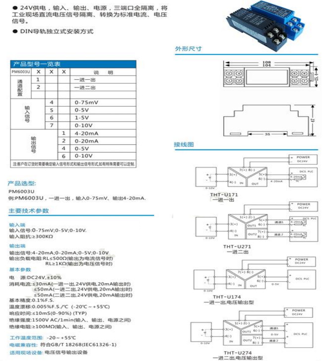PM6003U141,PM6003U162,PM6003U244,PM6003U166,PM6003U276,PM6003U,電壓輸入隔離器(有源型)