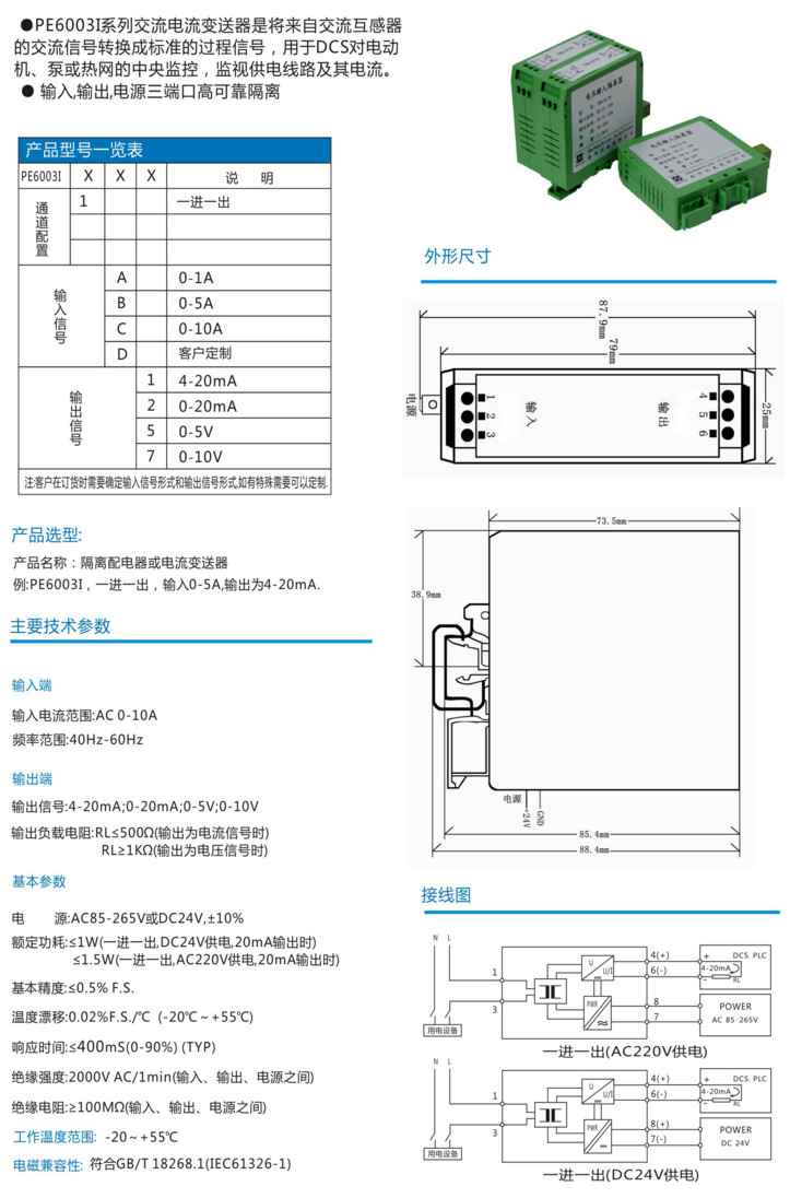 PE6003I1A,PE6003I1B,PE6003I1C,PE6003I1D,PE6003I,隔離信號配電器
