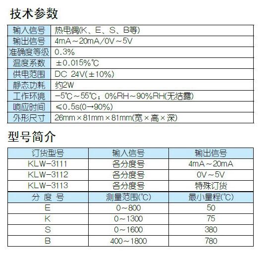 KLW-3111,KLW-3112,KLW-3113,KLW-311,熱電偶輸入信號(hào)隔離處理器