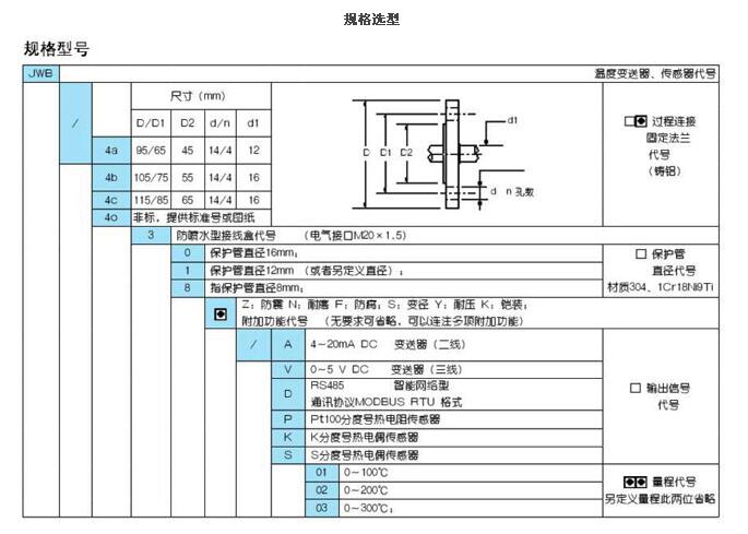 JWB/4a30,JWB/4a31,JWB/4a38,JWB/4b30,JWB/4a30/K,JWB/43,防水型固定法蘭式一體化溫度變送器