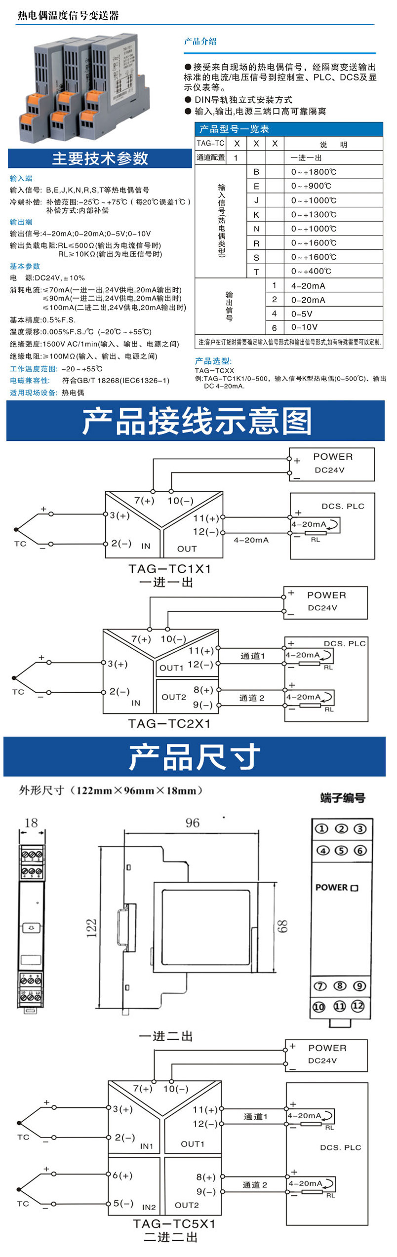 TAG-TC1B1,TAG-TC1E2,TAG-TC1J4,TAG-TC1K6,TAG-TC1S6,TAG-TC,熱電偶溫度信號變送器