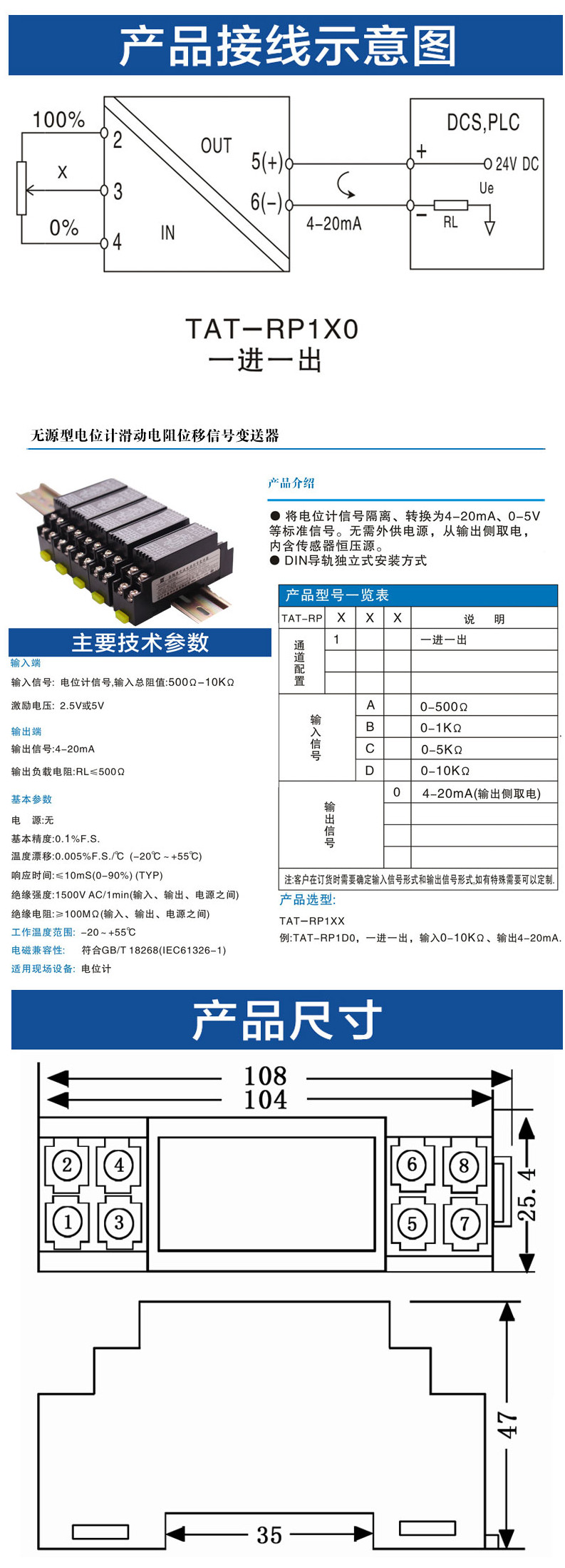 TAT-RP1A0,TAT-RP1B0,TAT-RP1C0,TAT-RP1D0,TAT-RP,無源型電位計(jì)滑動(dòng)電阻位移信號(hào)變送器
