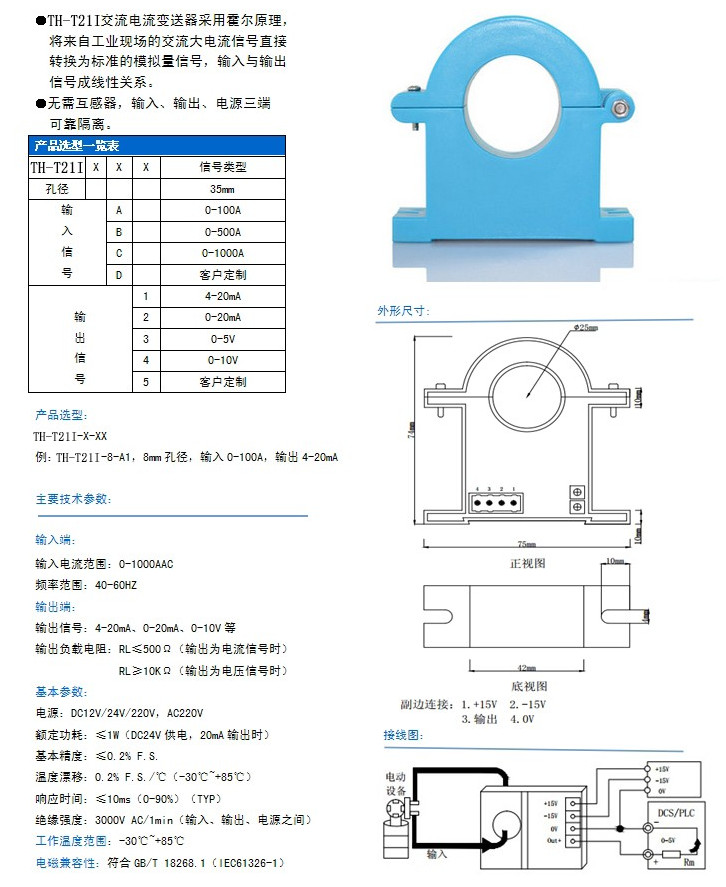 TH-T21I-35-A1,TH-T21I-35-B2,TH-T21I-35-D5,TH-T21I-8-A1,TH-T21I,交流電流變送器