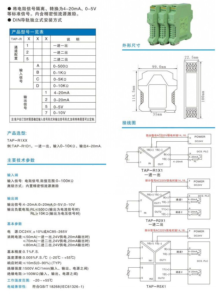TAP-R1A1,TAP-R1C2,TAP-R1D1,TAP-R2A5,TAP-R2D5,TAP-R5A7,TAP-R5D7,TAP-R,電阻信號(hào)隔離器