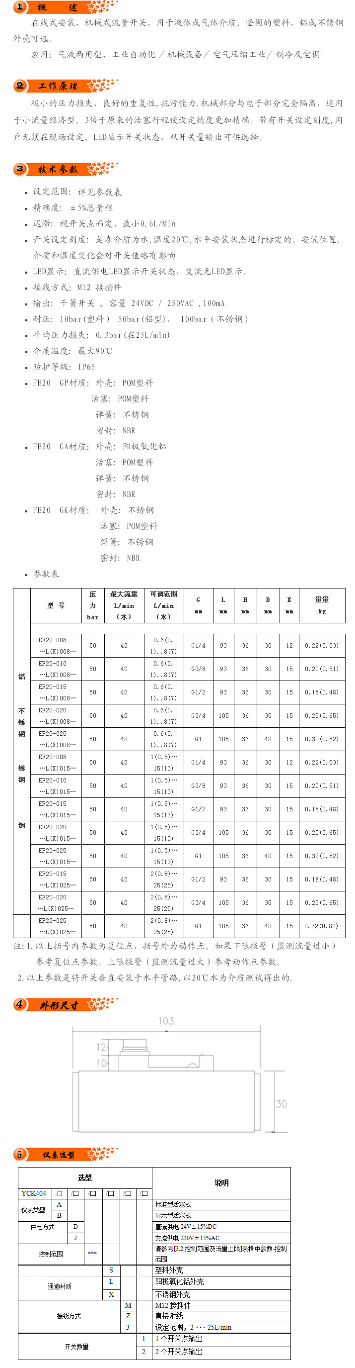 YCK404A,YCK404B,YCK404,活塞式流量開(kāi)關(guān)
