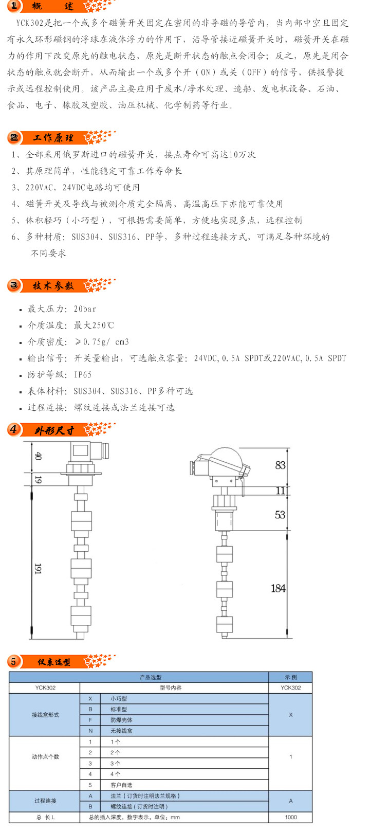 YCK302X,YCK302B,YCK302F,YCK302N,YCK302,液位開關