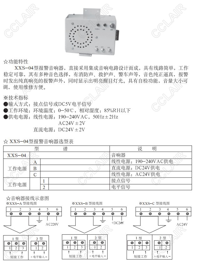 XXS-04A1,XXS-04A2,XXS-04B1,XXS-04B2,XXS-04C1,XXS-04C2,XXS-04,音響報警器