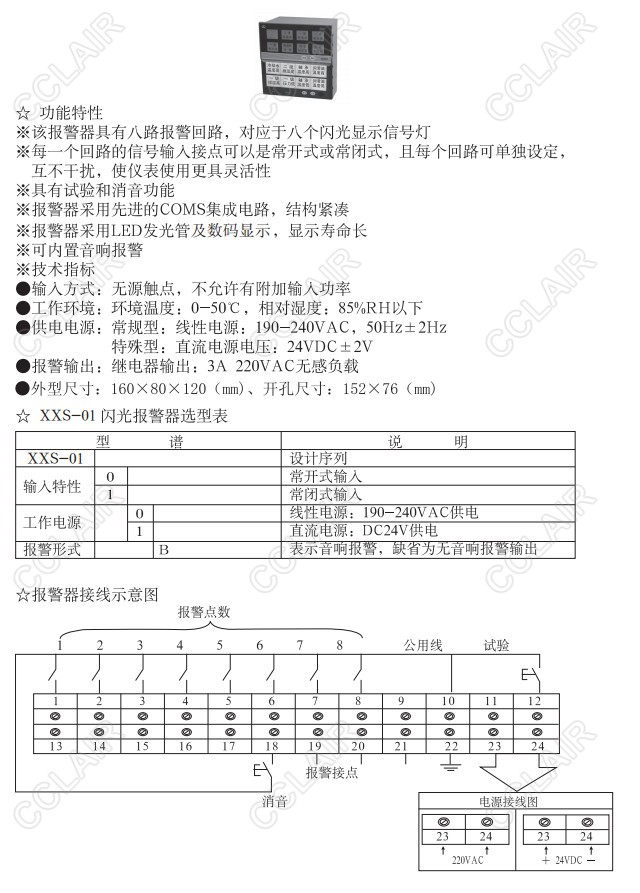XXS-0100B,XXS-0101B,XXS-0110B,XXS-0111B,XXS-01,八回路閃光報(bào)警器
