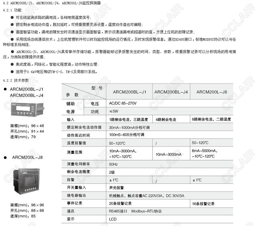 ARCM100-Z,ARCM200BL-J1,ARCM200BL-J4,ARCM200L-J8,ARCM200L-Z,ARCM,剩余電流式電氣火災(zāi)監(jiān)控裝置