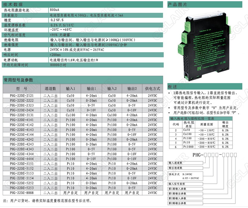 PHG-22DZ-5154,PHG-22DZ-5252,PHG-22DZ-5253,PHG-22DZ-8888熱電阻型信號隔離分配器