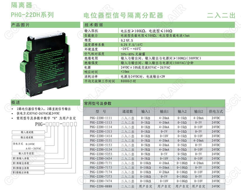 PHG-22DH-7373,PHG-22DH-7474,PHG-22DH-8888電位器型信號(hào)隔離分配器
