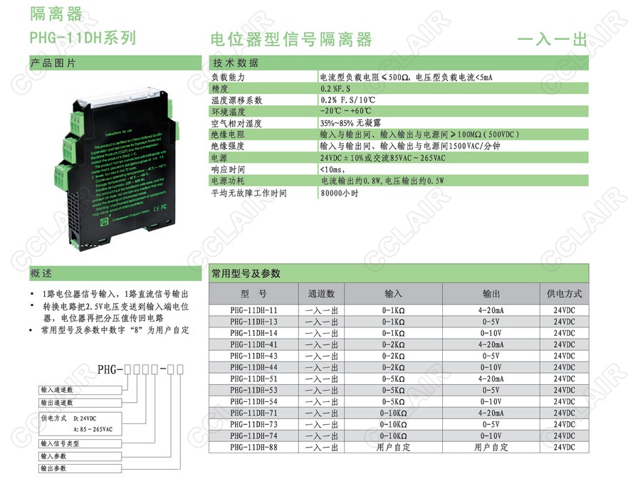 PHG-11DH-54,PHG-11DH-71,PHG-11DH-73,PHG-11DH-74,PHG-11DH-88電位器型信號(hào)隔離器