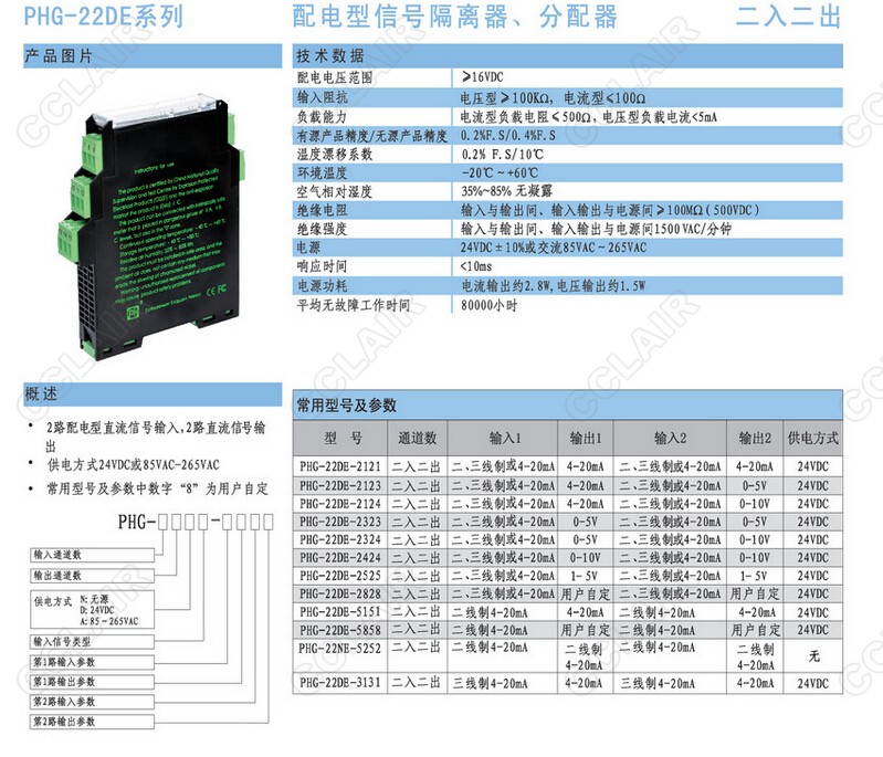 PHG-22DE-2828,PHG-22DE-5151,PHG-22DE-5858,PHG-22NE-5252,PHG-22DE-3131配電型信號(hào)隔離器分配器