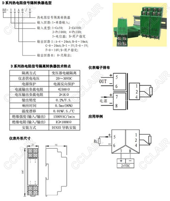 DZ-11A0/Y,DZ-12B0/Y,DZ-13C0/Y,DZ-14D0/Y,DZ-15F0/Y,熱電阻信號(hào)隔離轉(zhuǎn)換器