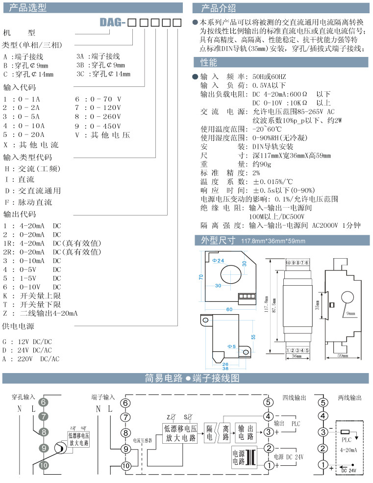 DAG-A1,DAG-B2,DAG-B6,DAG-C8,DAG-3A3,DAG-3A6,DAG-3B4,DAG-3C9,DAG,有效值電流變送器