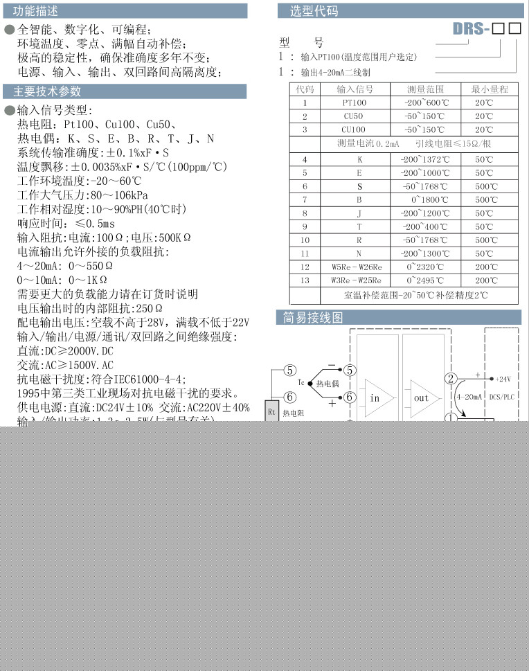 DRS-1,DRS-2,DRS-3,DRS-4,DRS-5,DRS-6,DRS-7,DRS-8,DRS-11,回路供電溫度變送器