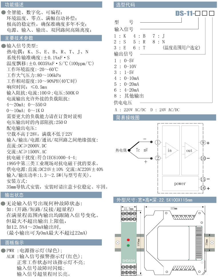 DS-11-11A,DS-11-16D,DS-11-31D,DS-11-36A,DS-11-56D,DS-11-83D,DS-11,熱電偶信號變送器
