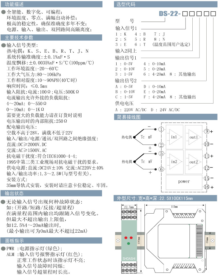 DS-22-1,DS-22-2,DS-22-3,DS-22-4,DS-22-5,DS-22-6,DS-22-7,DS-22-8,DS-22,熱電偶信號變送器