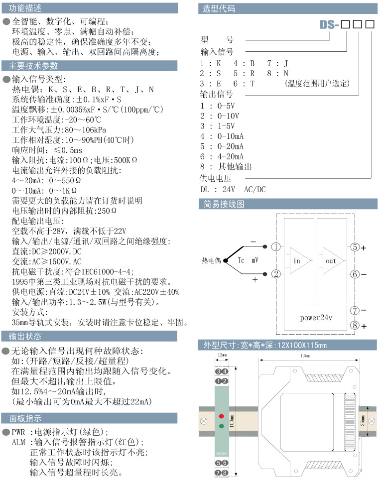 DS-11DL,DS-23DL,DS-34DL,DS-46DL,DS-52DL,DS-65DL,DS-78DL,DS-DL,熱電偶信號變送器