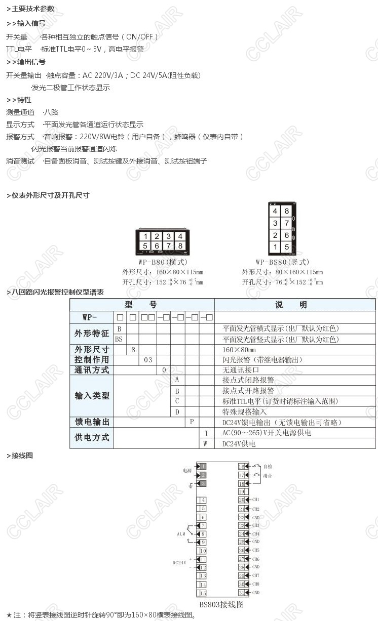 型號(hào): WP-B80,WP-BS80,WP-B803-0-A-P-W,WP-BS803-0-A-P-T,八回路閃光報(bào)警控制儀