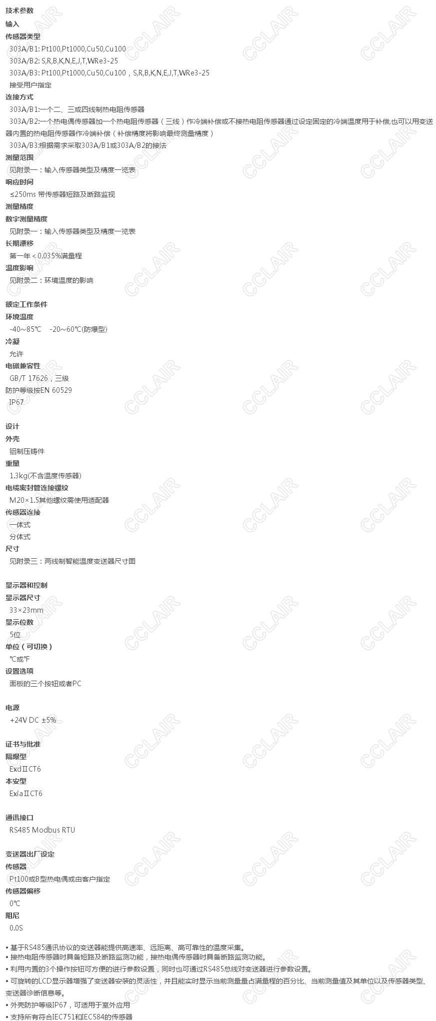 303A1,B1:Pt100,Pt1000,Cu50,Cu100 303A2,B2:S,R,B,K,N,E,J,T,WRe3-25 303A3,B3:Pt100,Pt1000,Cu50,Cu100,S,R,B,K,N,E,J,T,WRe3-25
