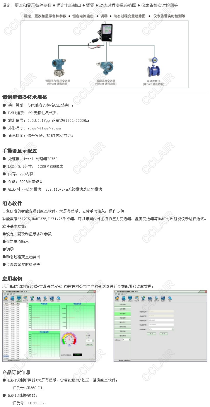 CH360-H1HART,CH360-H2HART,HART手操器采用HART調(diào)制解調(diào)器+大屏幕顯示+組態(tài)軟件