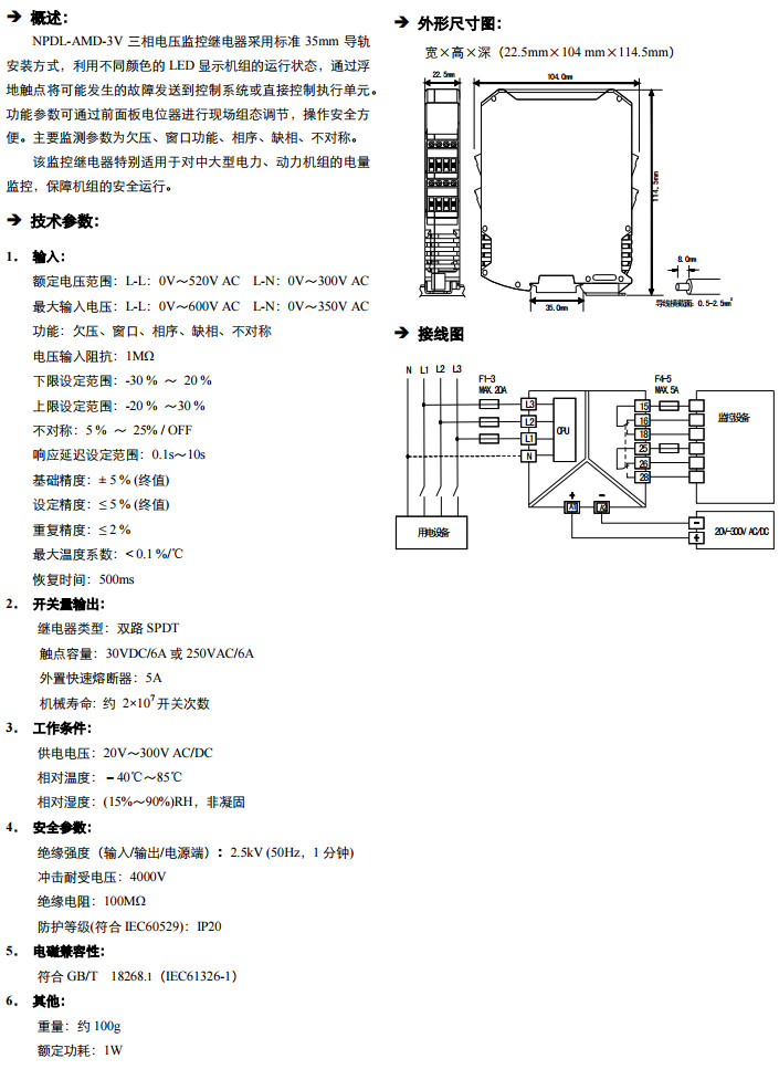 NPDL-AMD-3V-600,三相電壓監(jiān)控繼電器