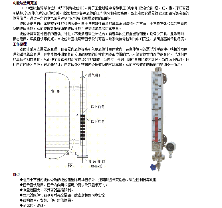 UHZ-50/C12TP-0O-3500-D-80℃-1.0UHZ-50/C1,UHZ-50/C2,UHZ-50/C3,側(cè)裝式磁性浮球液位計(jì)