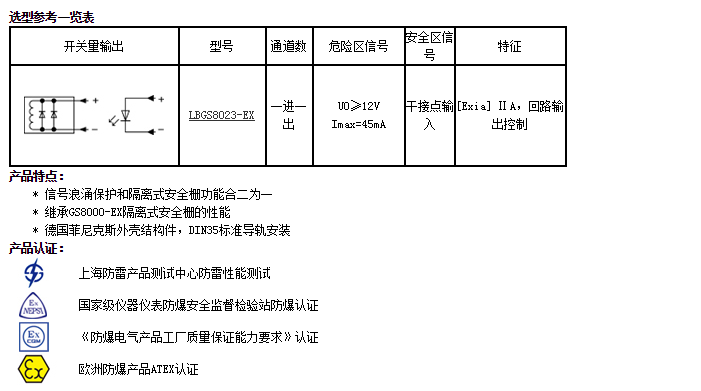 LBGS8023-EX,開關(guān)量輸出浪涌保護隔離柵