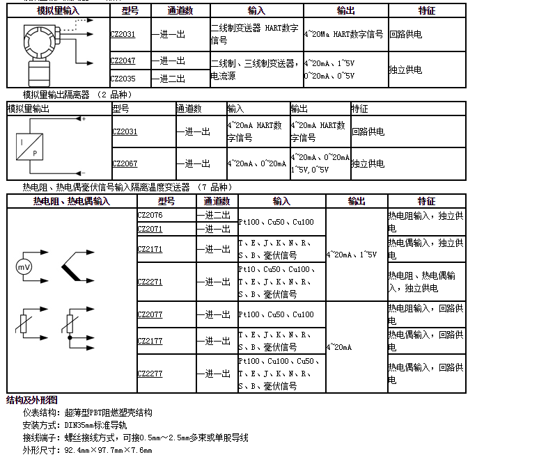 CZ2031,CZ2047,CZ2035,CZ2031,CZ2067,CZ2076,信號(hào)隔離器、轉(zhuǎn)換器