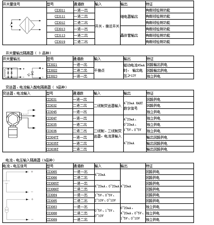 CZ3011,CZ3111,CZ3012,CZ3013,CZ3113,CZ3019,CZ3083,隔離器、轉(zhuǎn)換器、報(bào)警設(shè)定器