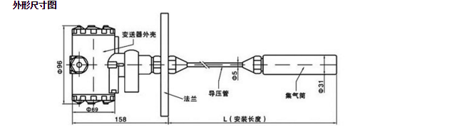 高溫導(dǎo)壓液位變送器(氣體導(dǎo)壓式,用于高溫、腐蝕性液體、污水等)的傳感器部分與信號(hào)處理電路在接線盒內(nèi)部,由投入液體內(nèi)的集氣筒內(nèi)的氣體與介質(zhì)接觸,通過導(dǎo)氣管將壓力傳遞給傳感器,避免了傳感器與被測(cè)介質(zhì)的直接接觸,適應(yīng)于高溫強(qiáng)腐蝕性等場(chǎng)合,有效地解決了高溫腐蝕液體以及污水液位測(cè)量的難題。它特別適合于高溫、腐蝕性液體和污水的測(cè)量。