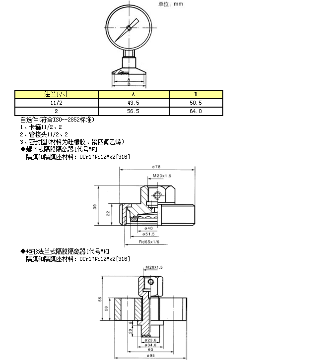 衛(wèi)生型隔膜壓力表是由通用型壓力儀表與隔膜隔離器組成一個(gè)系統(tǒng)的隔膜壓力表。具有在工藝現(xiàn)場(chǎng)裝拆快捷方便、不易污染、容易清洗、安全可靠的安全等優(yōu)點(diǎn)。能滿足藥品生產(chǎn)質(zhì)量規(guī)范(GMP)的要求。在制藥、食品、飲水、水處理等行業(yè)對(duì)儀表有衛(wèi)生要求的工藝流程中得到廣泛應(yīng)用。