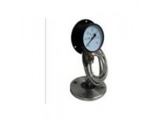 結構原理 隔膜壓力表由各種通用型壓力儀表和不同結構的隔膜隔離器組成一個封閉系統(tǒng),內充密封液。當被測介質的壓力作用于隔膜時,則隔膜產生變形,壓縮封閉系統(tǒng)中的密封液。由于密封液的固有性質,使壓力儀表中的彈性元件產生相應的彈性變形一位移,經指示裝置顯示壓力值。當隔膜的剛度足夠小時,則壓力儀表指示的壓力就近于被測介質的壓力值。