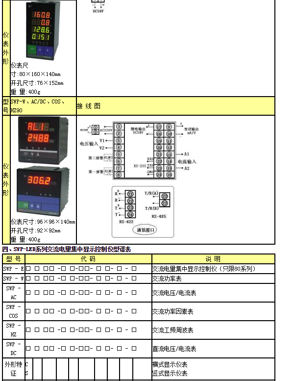 4、SWP-E系列儀表能夠同時顯示4組交流電工參數(shù)。