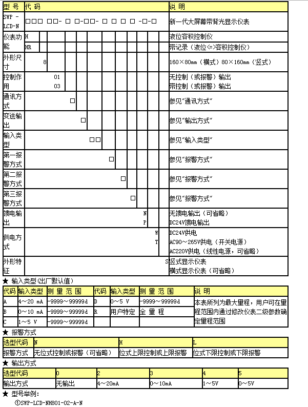 SWP-LCD-NH系列液位<=>容積控制儀可對各種形狀罐體進(jìn)行液位<=>容積轉(zhuǎn)換測量控制。