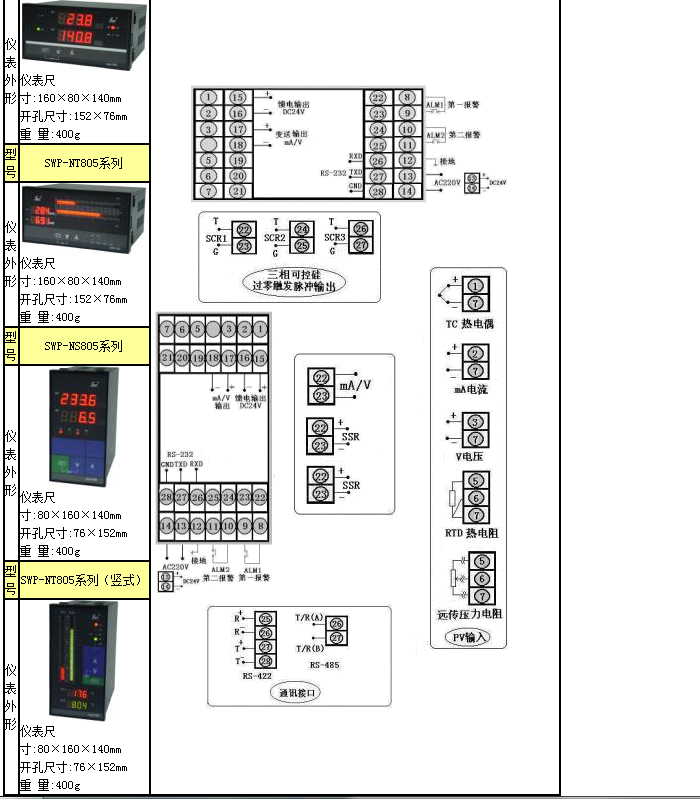 4、 具有多種調節(jié)輸出方式(PWM輸出、可控規(guī)觸發(fā)輸出、固態(tài)繼電器輸出及電壓/電流輸出)。