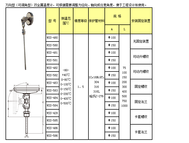 WSS-480,WSS-482,WSS-484,WSS-486,雙金屬溫度計