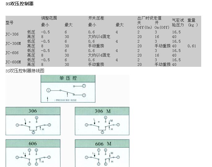 JC-306,JC-306M ,JC-606,JC--606M,雙壓控制器 用于空氣,液體及氟化處理的制冷劑(容許液體溫度-40~135℃) 1,微動開關(guān)可靠性好,壽命長2 提供安裝托架5、 歐洲CE認(rèn)證,ROHS認(rèn)證