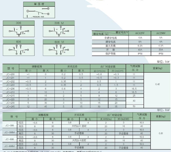 JC200,Jc201,Jc202,Jc203,JC206,Jc210,Jc215,Jc220,JC230,JC245, JC-306,JC-306M,JC-606,JC-606M,壓力開關(guān)̴ |