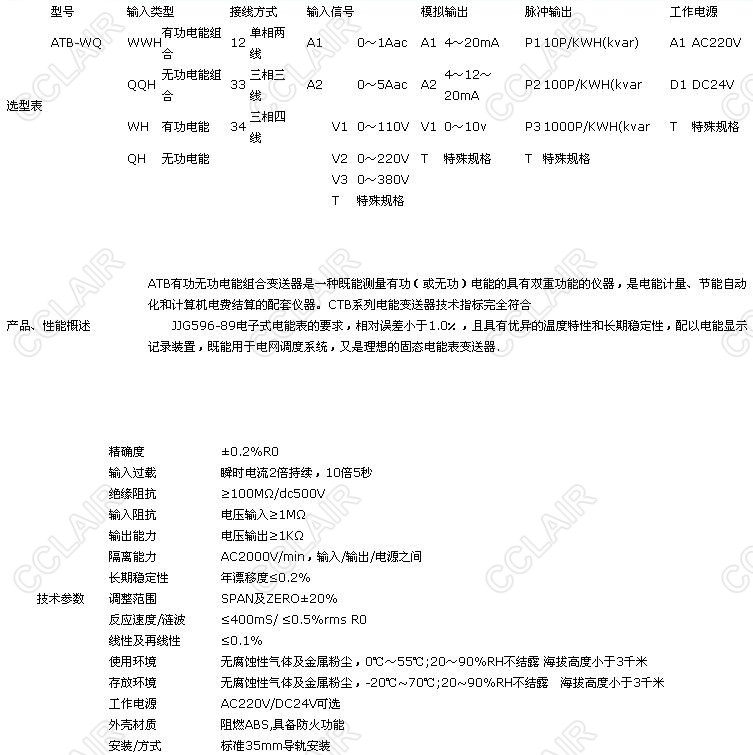 ATB-WQWWH,ATB-WQQQH,ATB-WQWH,ATB-WQQH,有功無(wú)功功率組合變送器