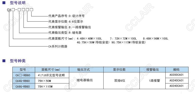 CA4-RB60,CA7-RB60,CA8-RB60,CA4G-RB60,CA9G-RB60,CA經(jīng)濟(jì)型計長/計數(shù)器