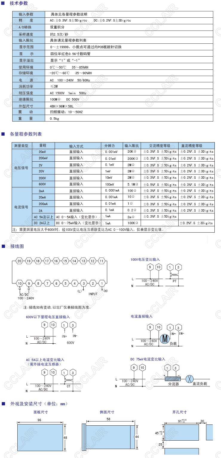 DA8-AV20,DA8-AV200,DA8-AV600,DA8-DV20,DA8-DV200,DA8-DV600,DA8四位半單顯示測量電流電壓表